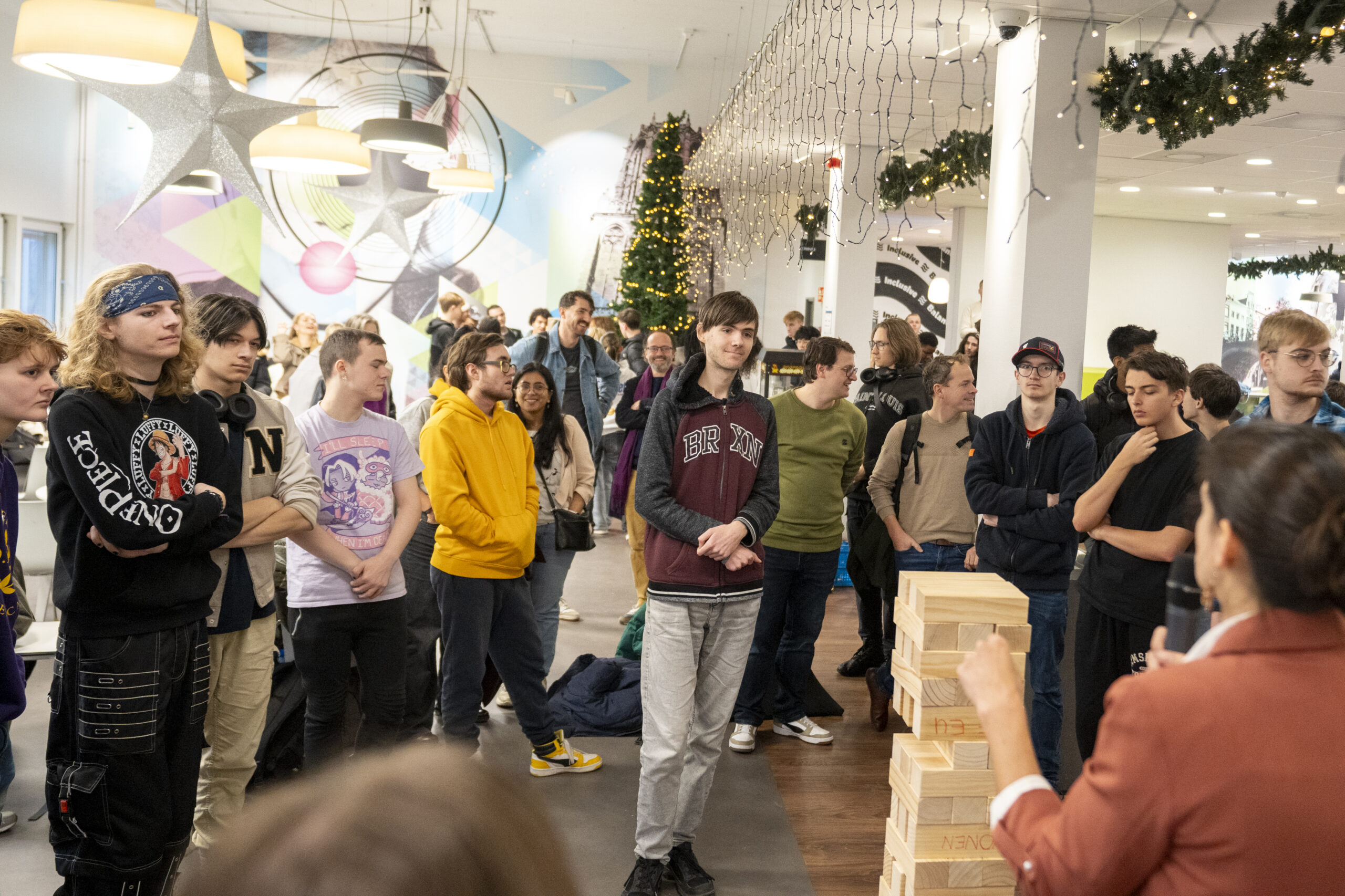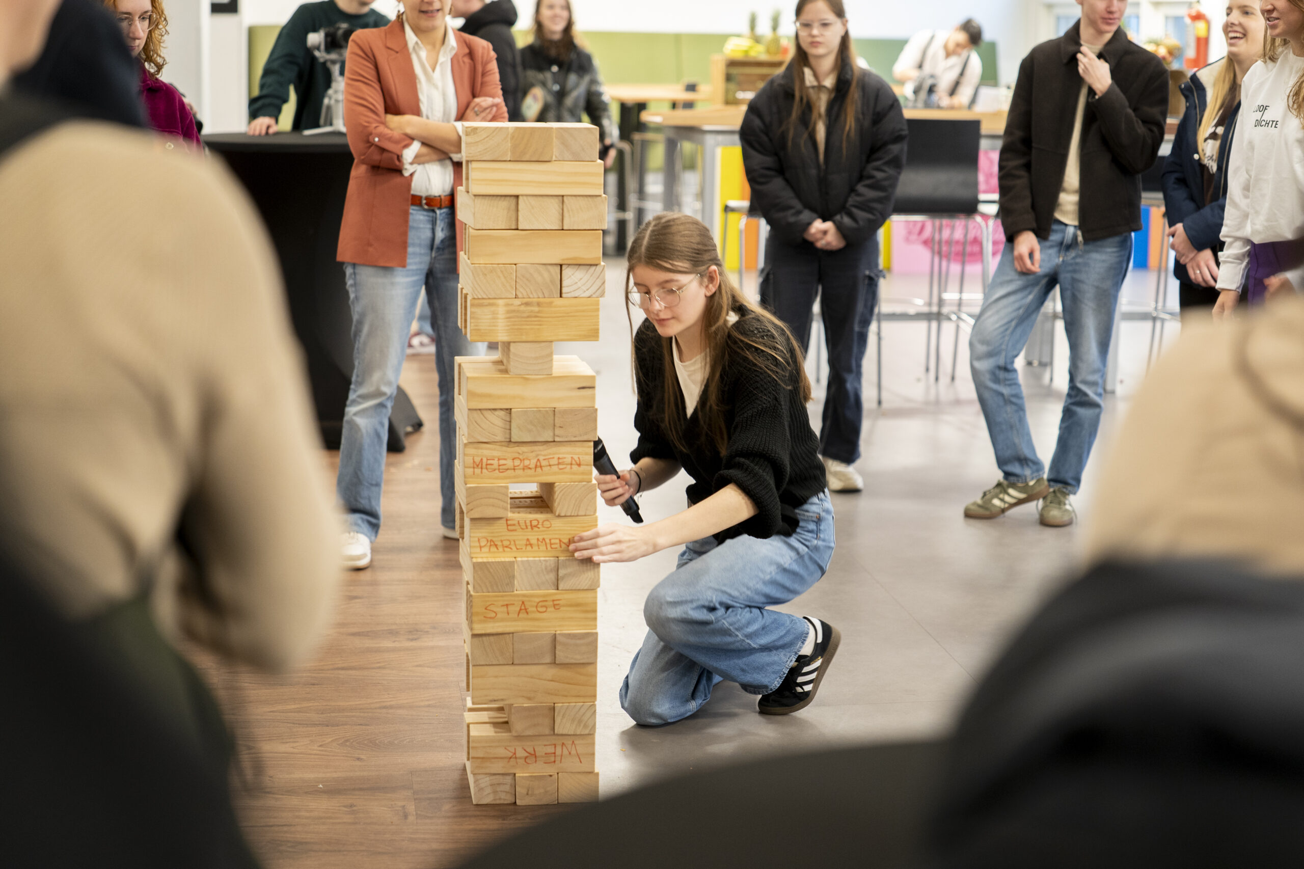 Nu is het spel af. Gamefluencer Kwebbelkop maakte het bekend: het gaat om You’re Europe. Dit is een digitaal spel waar jongeren in Europa keuzes krijgen voorgeschoteld, bijvoorbeeld over hoeveel geld en medicijnen er naar Oekraïne moeten. Ze kunnen informatie opvragen via kranten, een activist en een lobbyist en zo hun keuze maken. Kwebbelkop en dagvoorzitter Willemijn de Koning bespraken de keuzes met elkaar. Ook Europarlementariërs Brigitte van den Berg en Marit Maij waren enthousiast. “Deze tool/game maakt de verbinding die tot nu toe te vaak ontbrak: de verbinding tussen student en politicus. Dat deze verbinding nu gemaakt is door studenten gamedesign zelf is natuurlijk fantastisch!” aldus van den Berg. Nadat zij worden geïnterviewd door de jongeren, halen zij ook meningen op van de jeugd met het spel Jenga.